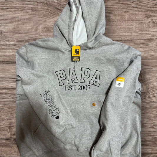 Dad/Papa custom embroidered hooded sweatshirt Carhartt & Gildan options!